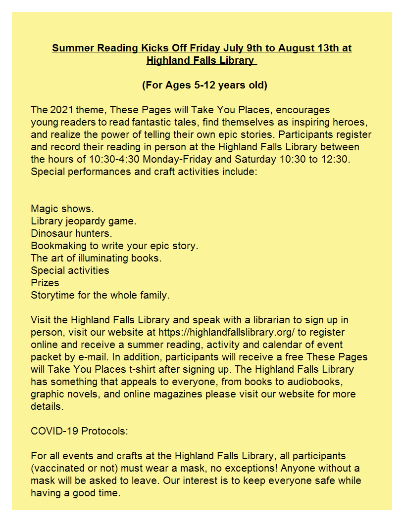 Serving the residents of Highland Falls and Fort Montgomery, and as a courtesy, residents of West Point, New York