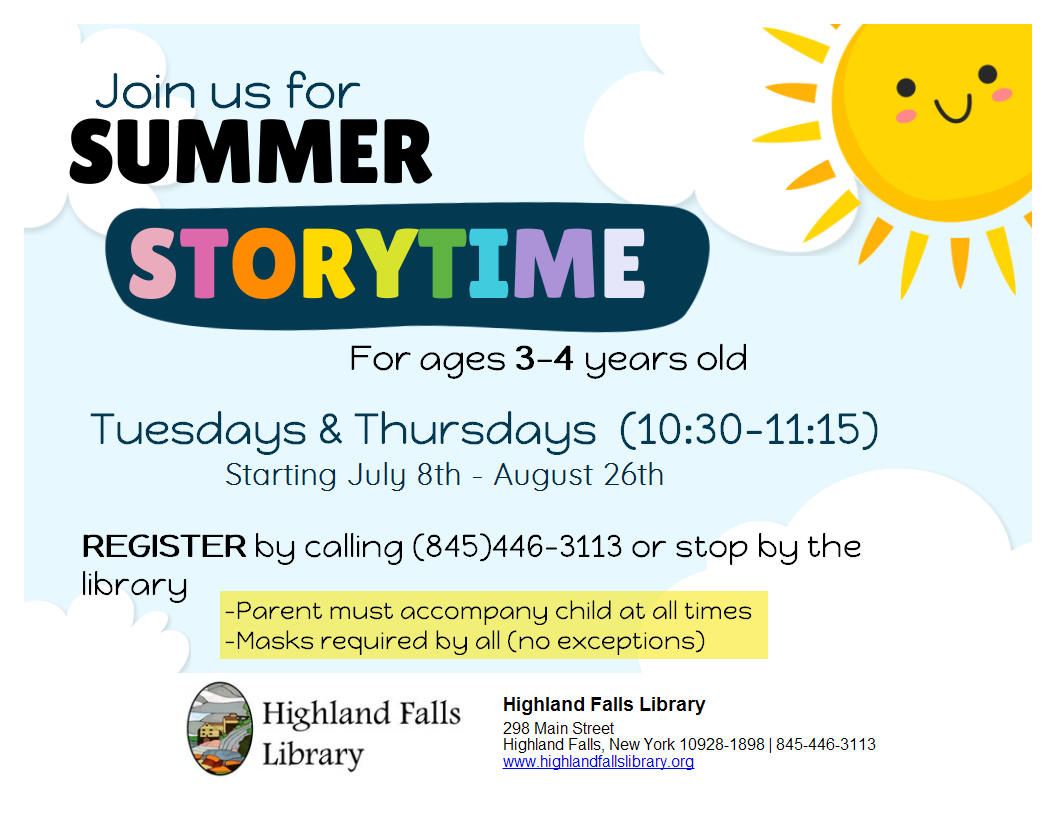 Register for SUMMER STORYTIME (July 8th-August 26th)