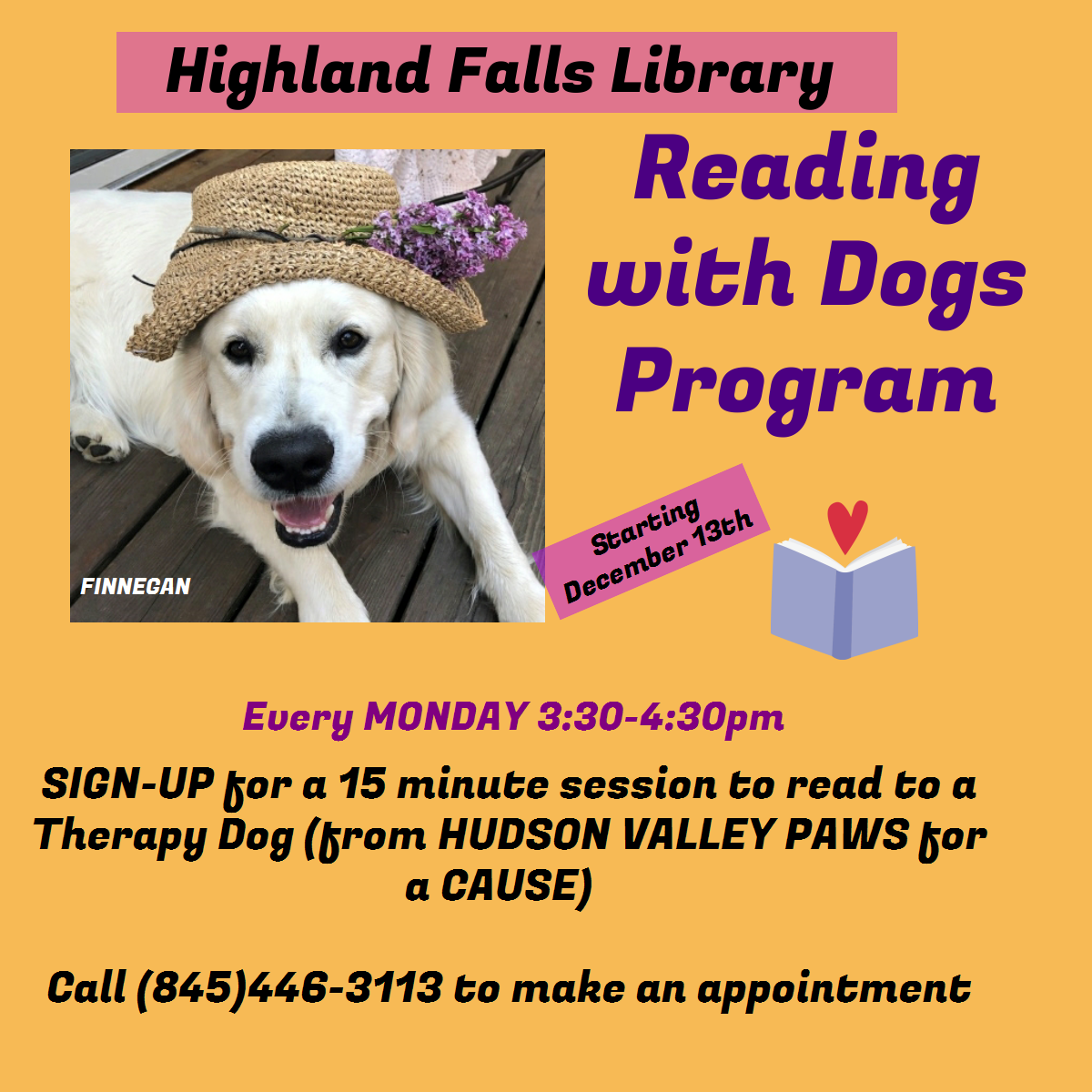 As of December 13, 2021 we will be resuming our Reading with Dogs Program.