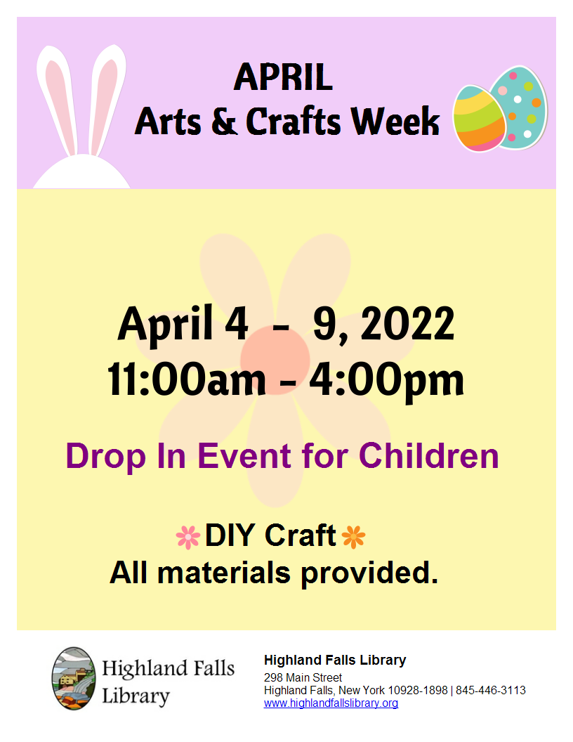 APRIL Arts & Crafts Week 4/4 – 4/9/22
