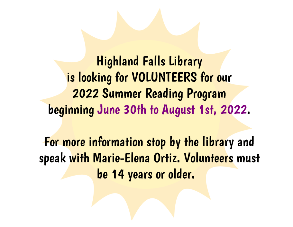 Highland Falls Library is in Search of the Following:
