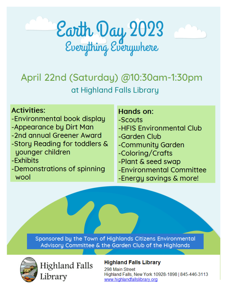 EARTH DAY 2023–Join us at the Library for Free Fun Events on April 22nd (Sat) & Help Support the Local Girl Scout Cookies Sale