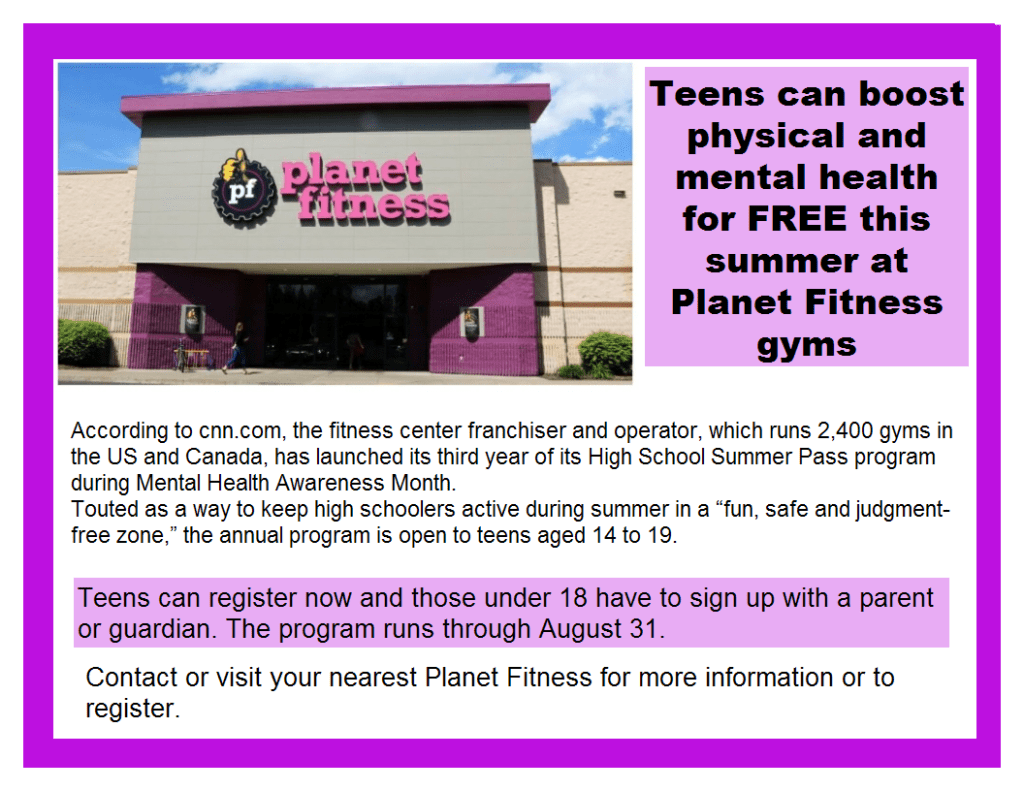 Planet Fitness is offering high schoolers free gym access this summer through its High School Summer Pass program, which runs through August.