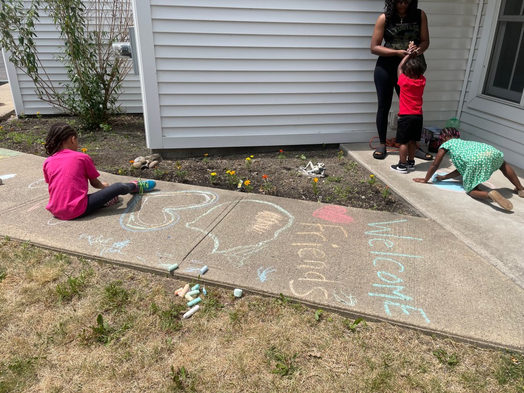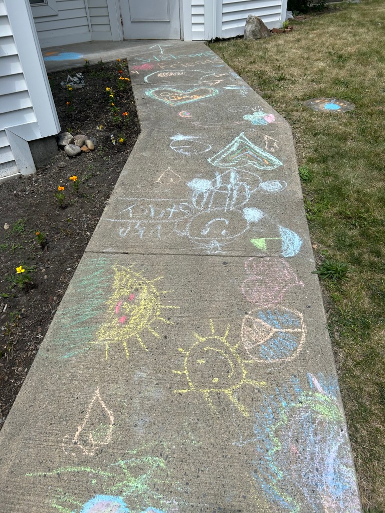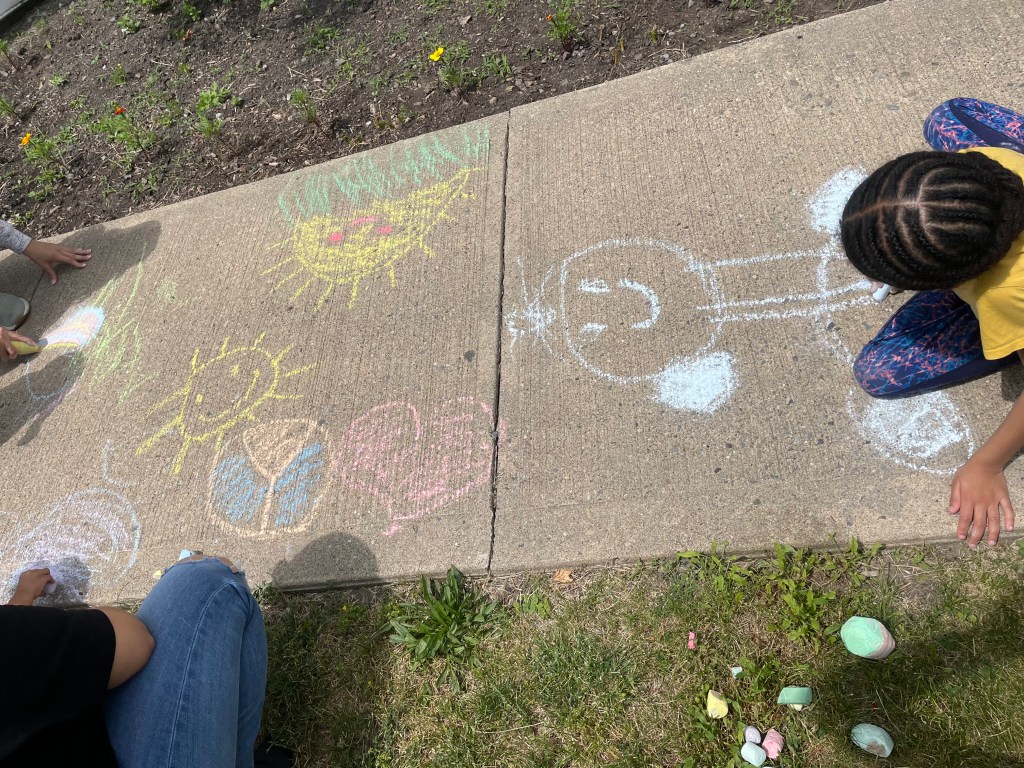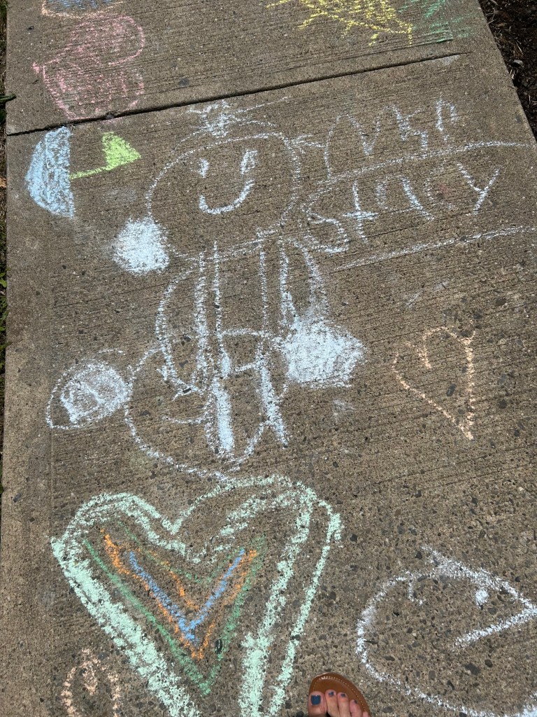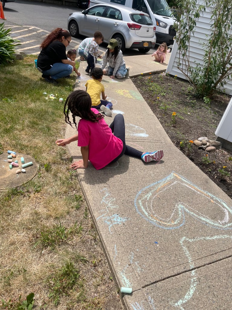 CHALK ART!!! Check out the artwork from today created by our talented storytime children.