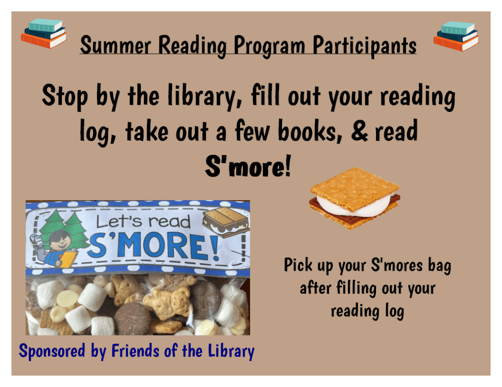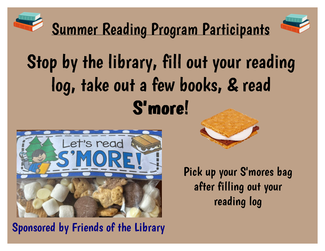 Summer Reading Program Participants–Come to the Library for S’more Books to Read!