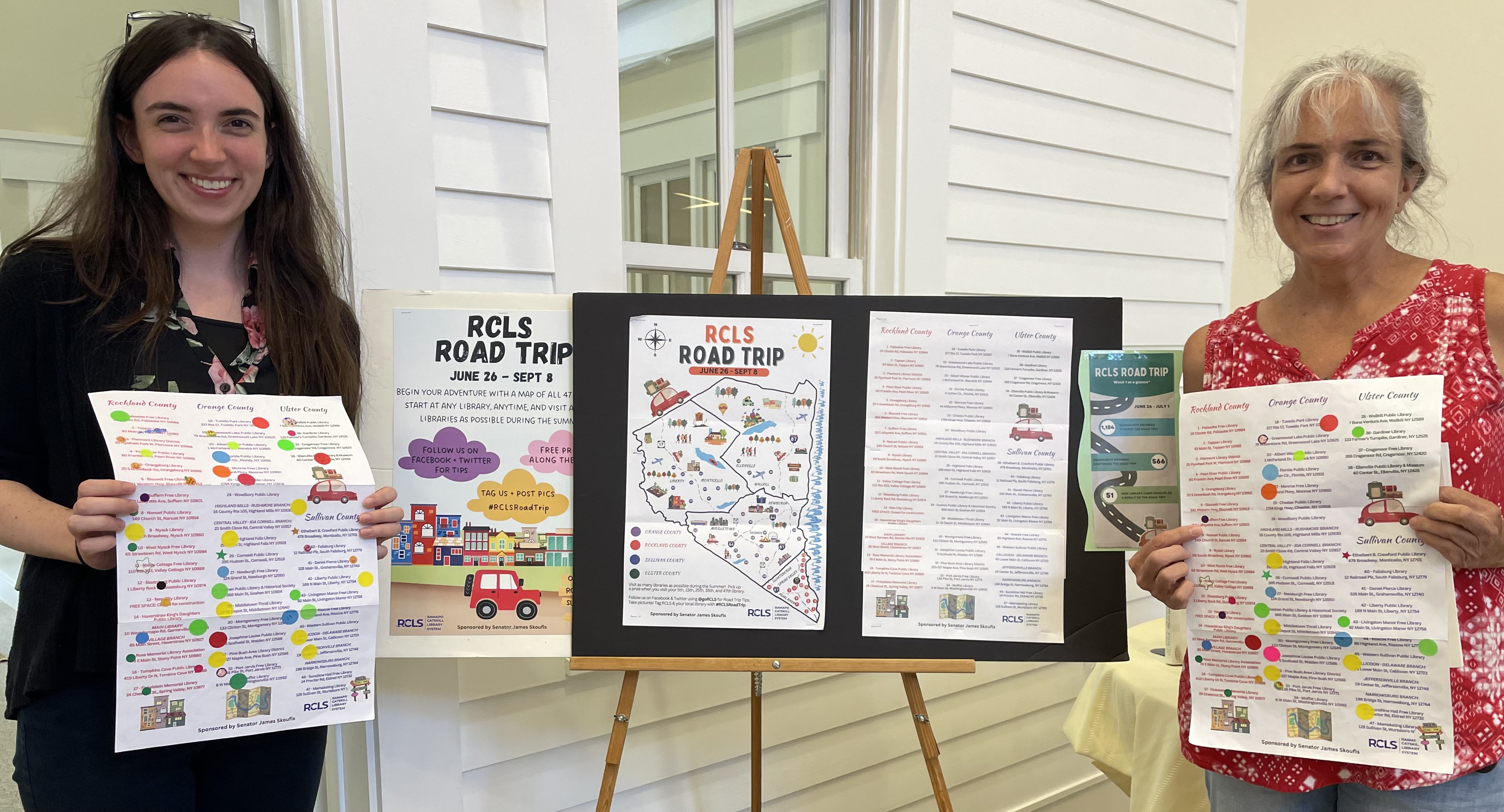 We had the honor of being the 47th (last) RCLS library to be visited by 2 excited Moffat Library Patrons from Washingtonville on August 22, 2023. The staff enjoyed talking to them about our unique Highland Falls Library and some of the programs that we offer. We also enjoyed hearing about their fun RCLS Road Trip journey.