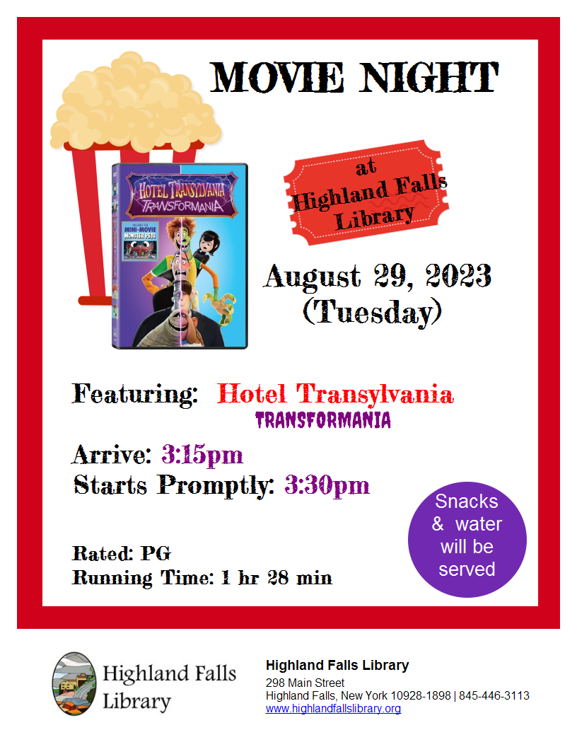 Join us for Movie Night on August 29th (Tuesday)