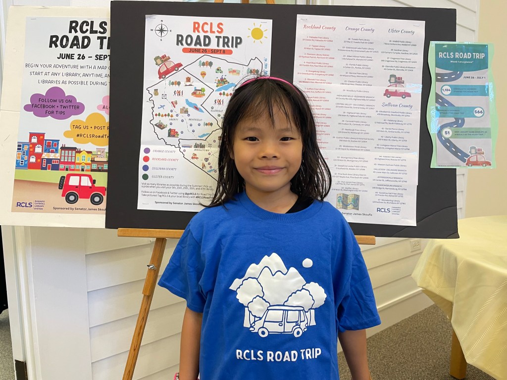 Ming-Ming Hsiang, 7 years old, has completed the RCLS Road Trip with her mom, Ho-Sing, and proudly wears her RCLS Road Trip t-shirt.