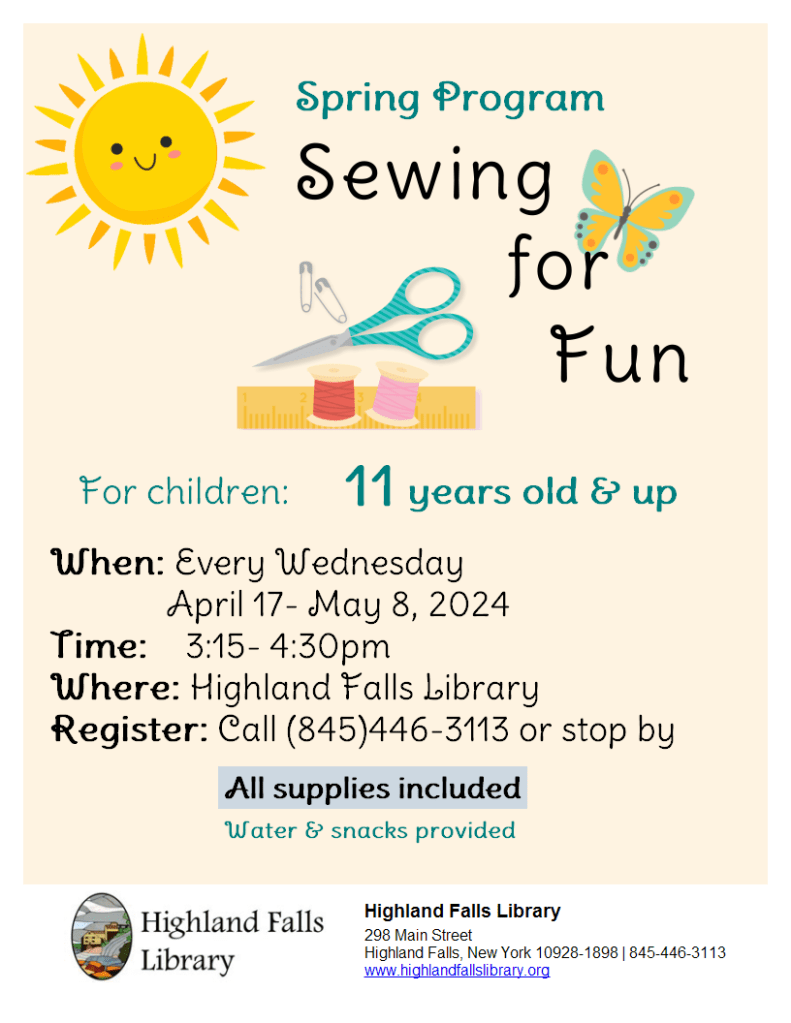 ← Tea Time at Highland Falls Library on May 4, 2024–Reservations Required