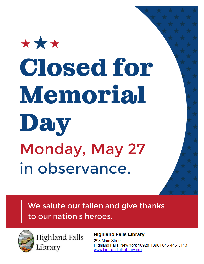 Library will be CLOSED May 27, 2024 in observance of Memorial Day