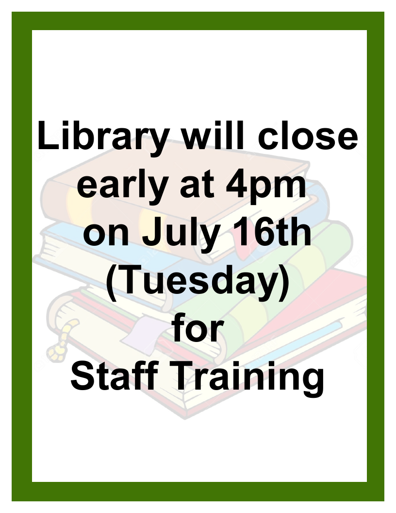 July 16, 2024 (Tuesday): Closing early at 4pm
