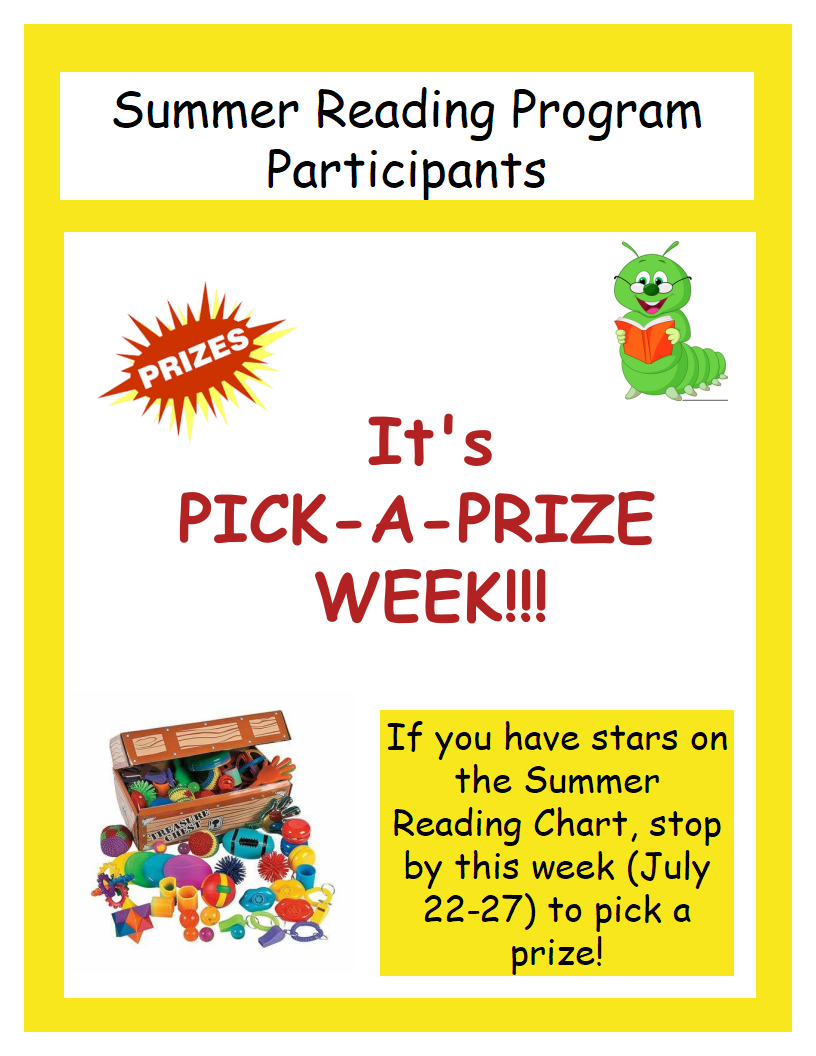 Pick-a-Prize Week— For Summer Reading Program Participants!