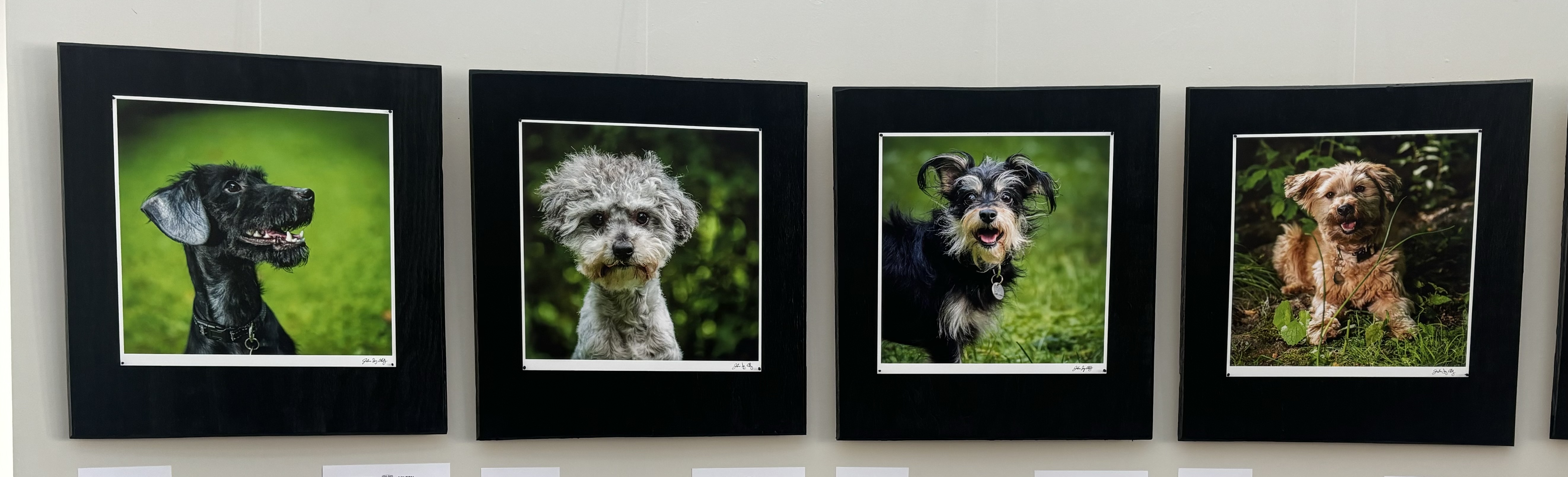 What a busy and exciting opening reception on October 19, 2024, with approximately 70 visitors (give or take some with 4 legs)! This photographic exhibition by Joshua Ivey Abitz celebrates the rescue stories of the rescue dogs from Animal Saints Rescue Society.