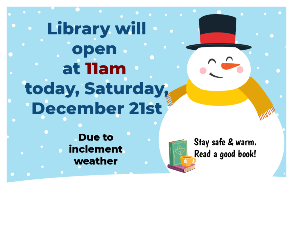 ← Library Will CLOSE Early Today, Friday, @ 2pm