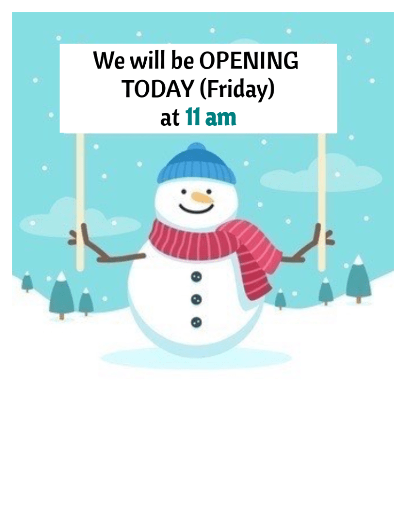 Delayed Opening Today (Friday) at 11am