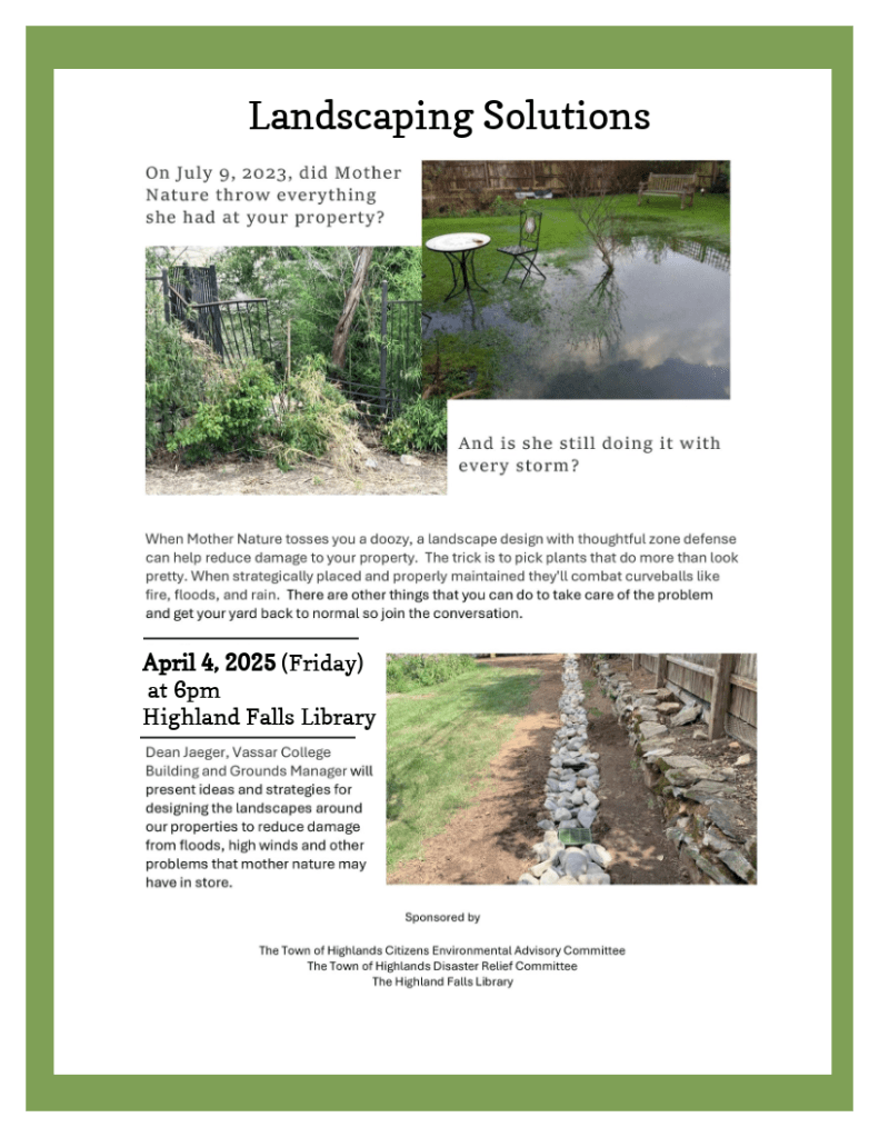 Landscaping Solutions Talk on April 4th (Friday) @6pm at Highland Falls Library