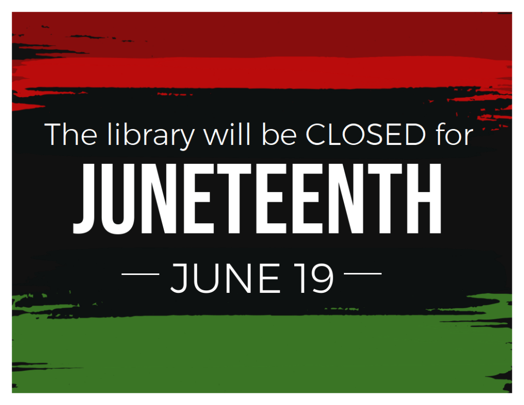 Library CLOSED for Juneteenth on June 19th (Thursday)