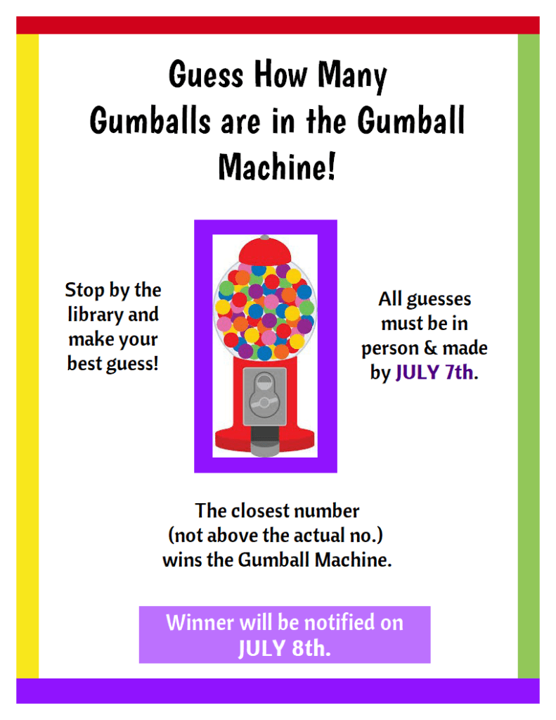 Stop by the Library and Guess the Number of Gumballs! You got to be in it to Win it!