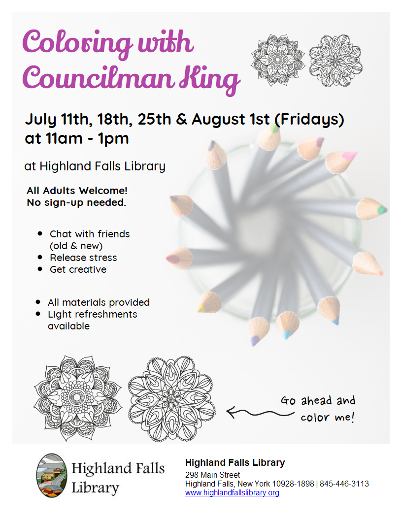 Join Councilman King for Coloring & Conversing