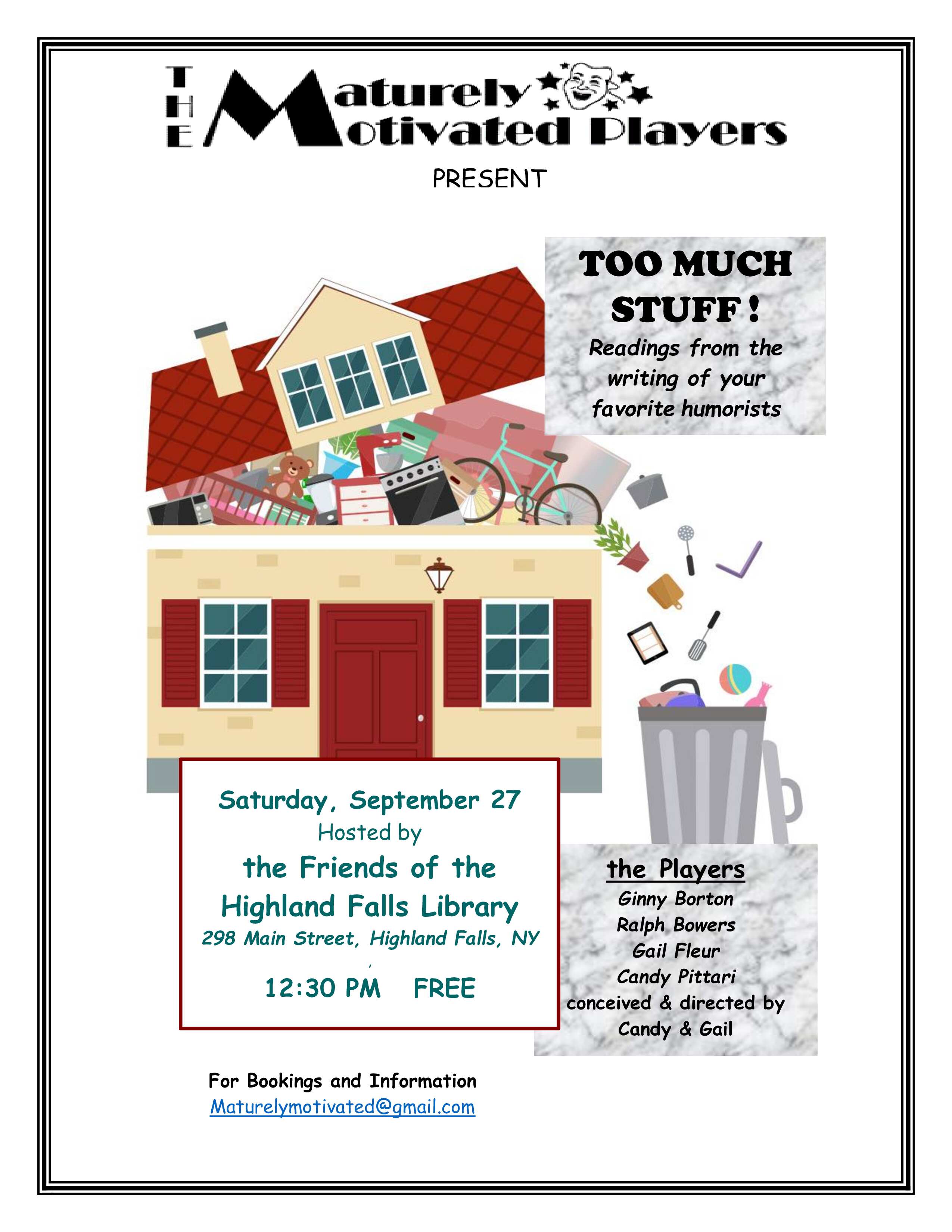Comedy Performance by The Maturely Motivated Players on September 27th (Sat) @12:30pm at the Library