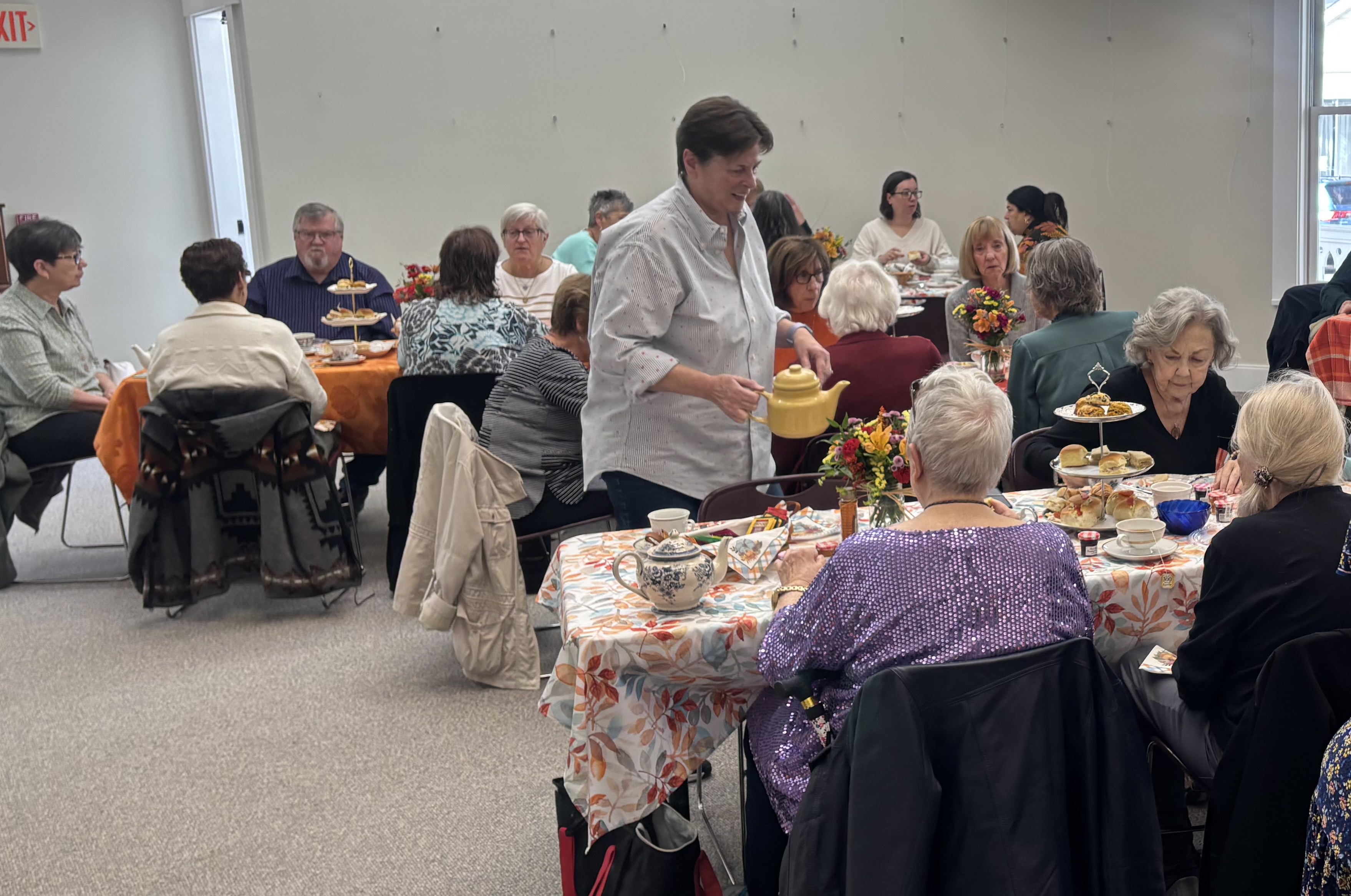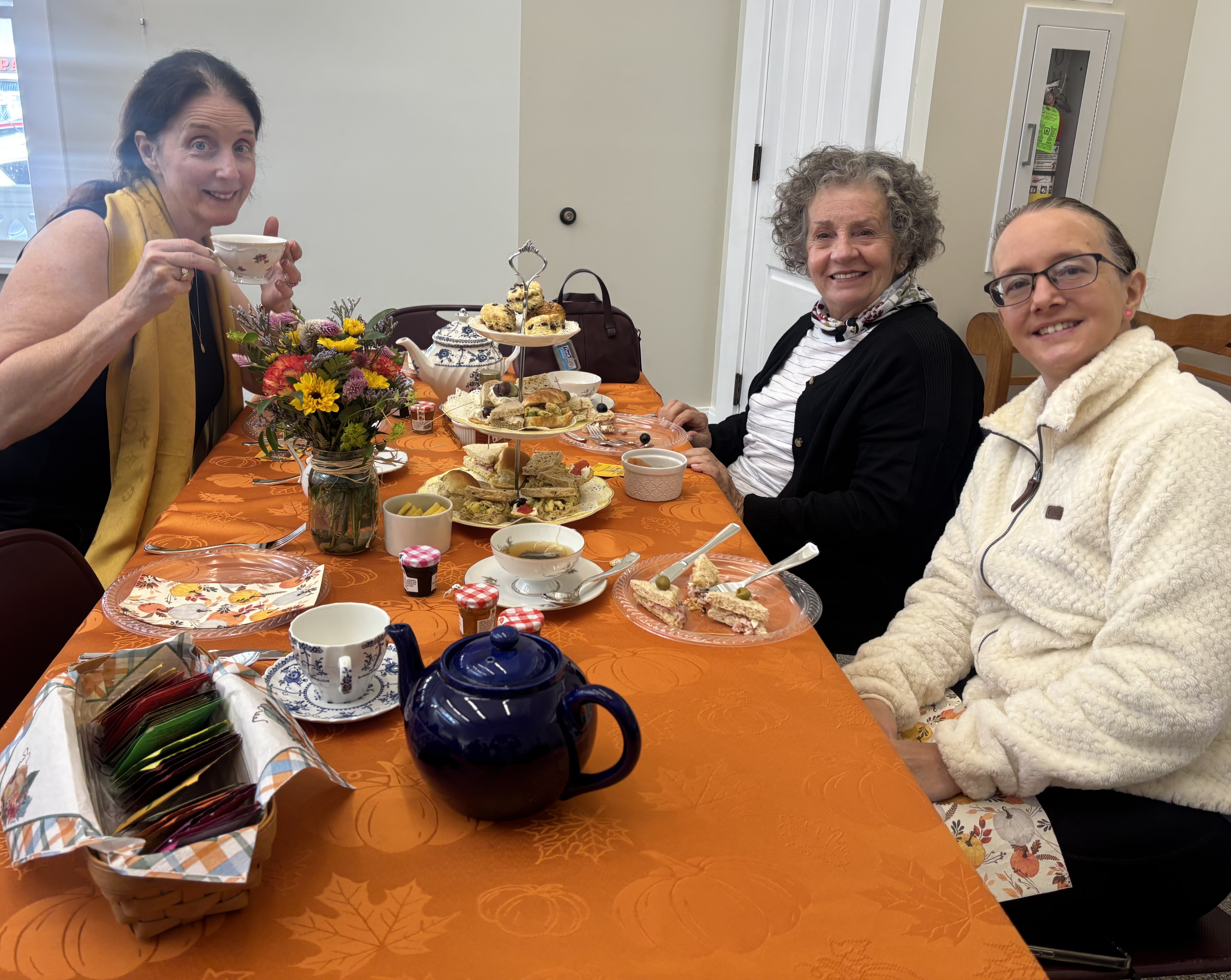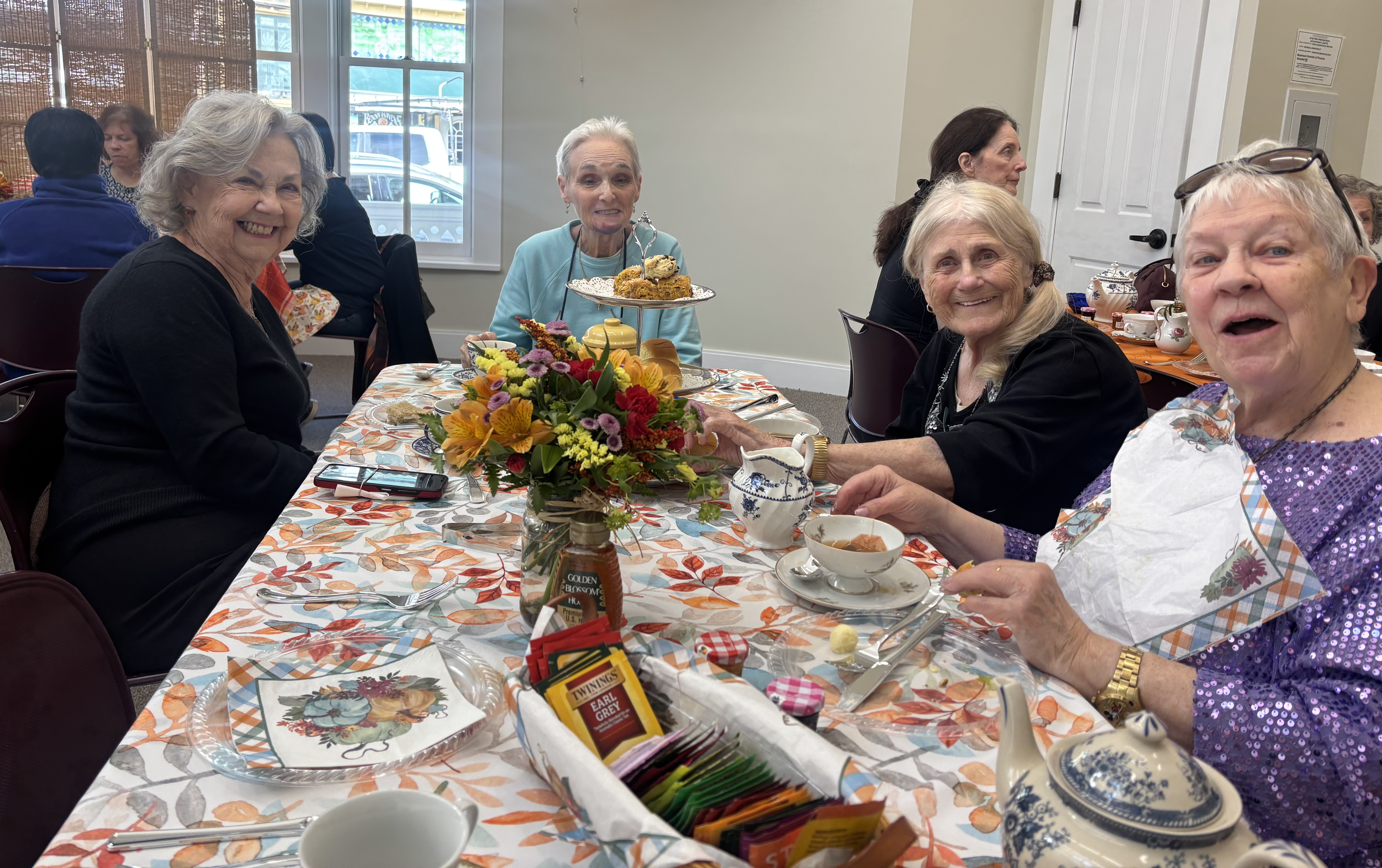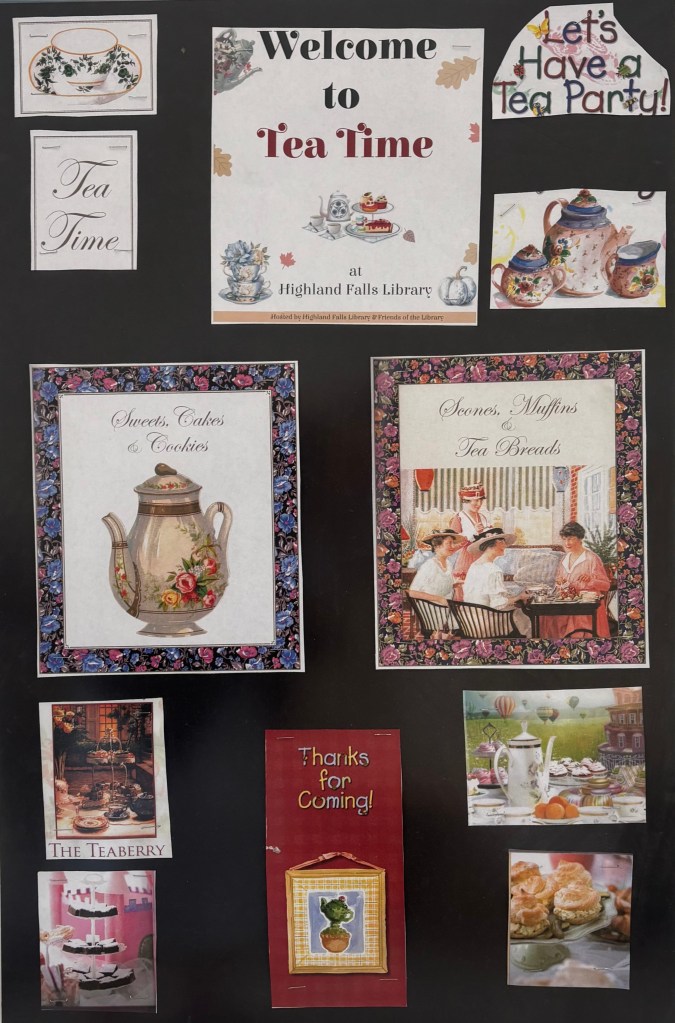 On October 18th (Sat), we had a “tea-rrific” gathering of friends, old and new, enjoying warm cups of tea, delicious tea sandwiches, scrumptious scones, and desserts! This event was hosted by Highland Falls Library and Friends of the Library with 30 tickets that sold out quickly.