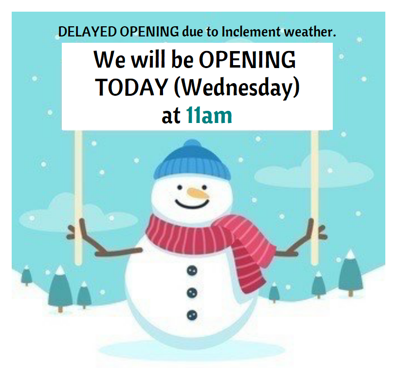 Delayed Opening at 11am Today, Wednesday