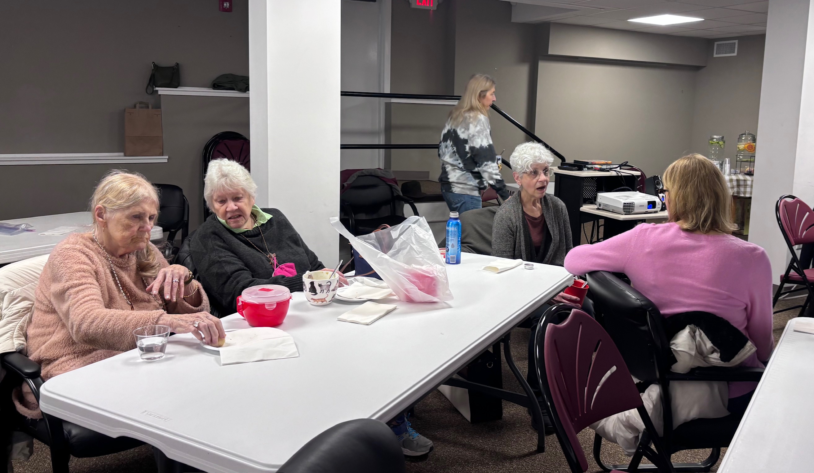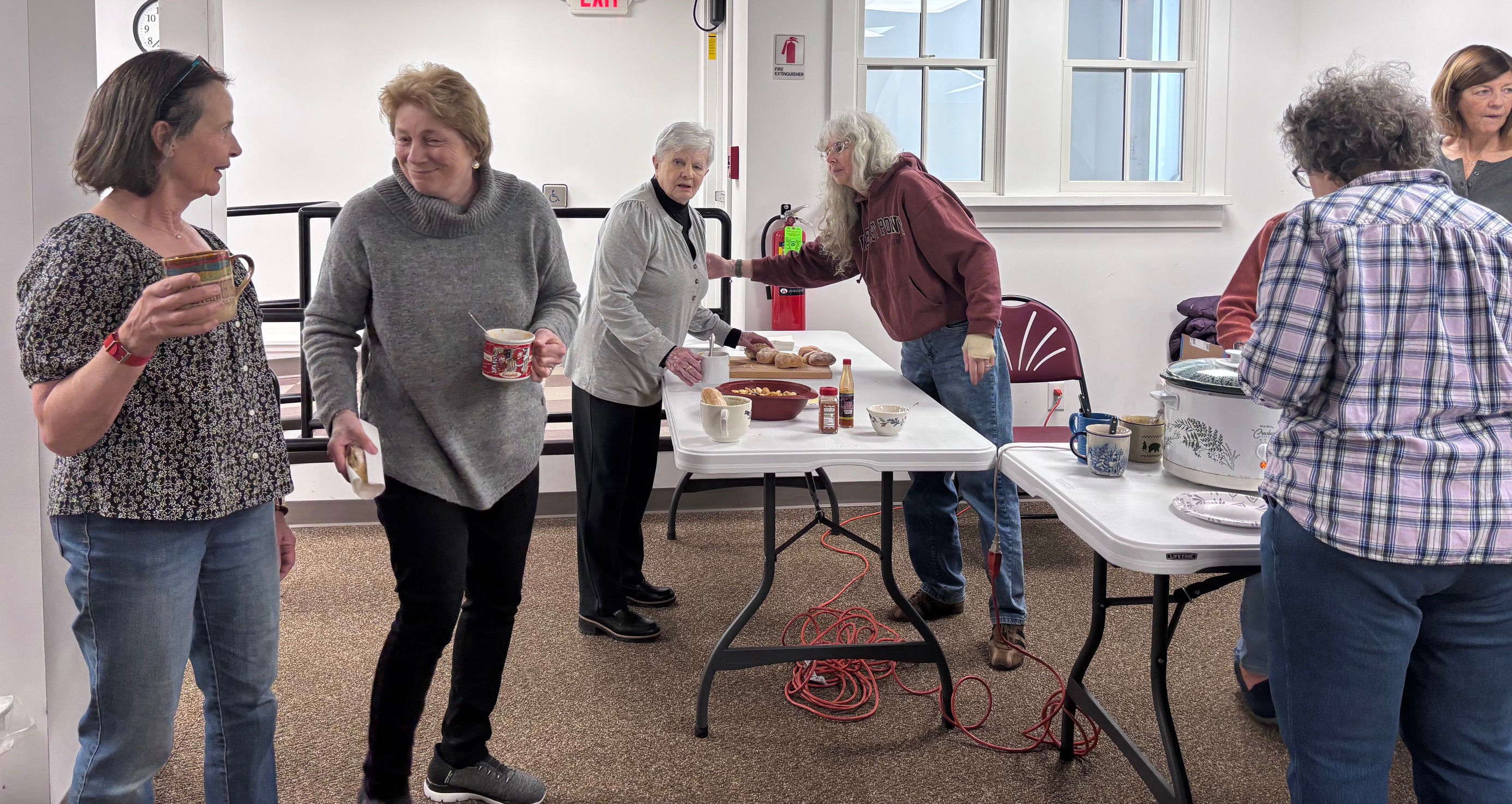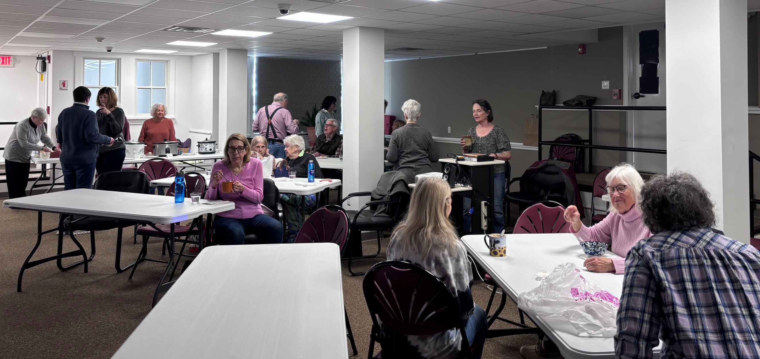 The scent of simmering Tomato Florentine Soup, Red Lentil Soup and Vegetarian Split Pea Soup filled the downstairs community room this past Saturday, March 28, 2026. Over 20 community members gathered at the library in the downstairs community room for a chance to share a meal, enjoy a film (When Harry Met Sally) and connect.