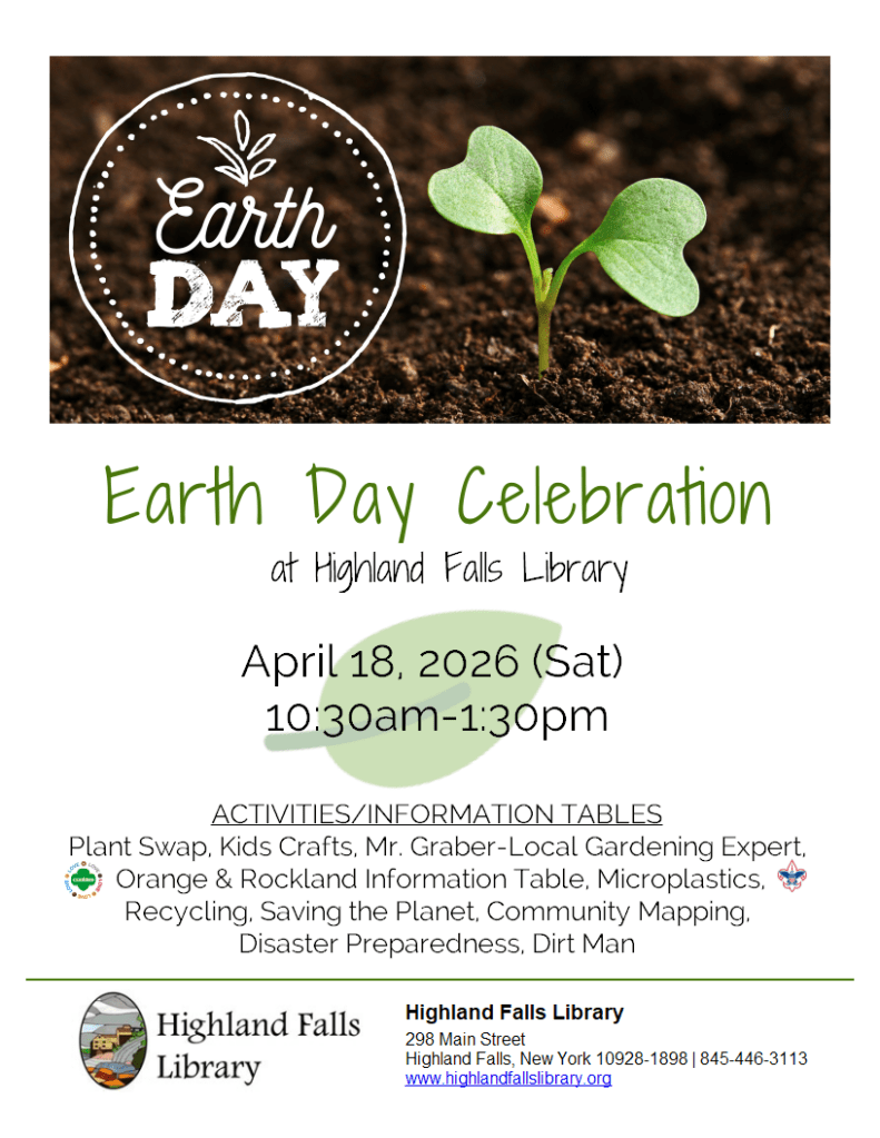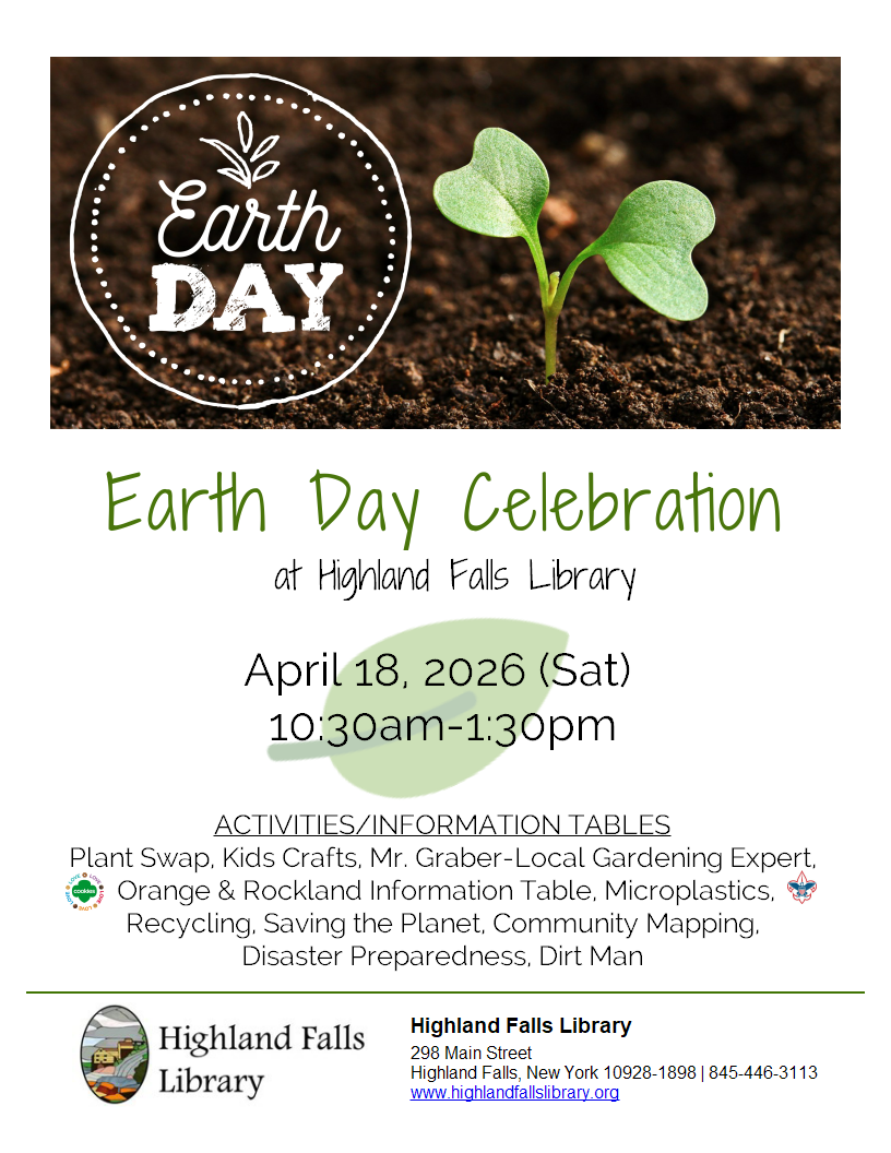 Join us on April 18th (Saturday) 10:30am -1:30pm at the library for fun and informative activities to celebrate Earth Day!