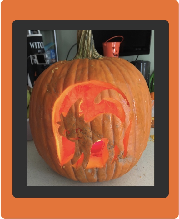 By Isaac Jones : “I am 3 years old and this was my first pumpkin carving! My dad, Nathan Jones, did the other pumpkin.”