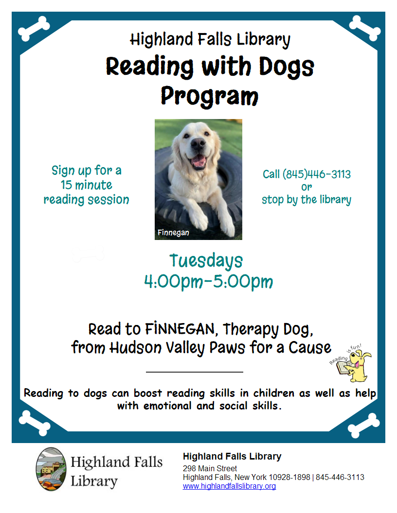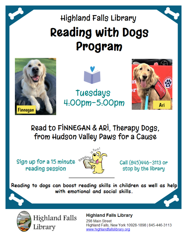 A program for school age children offered at Highland Falls Library with an appointment. Walk-ins when available.
